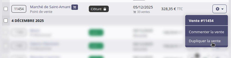 En dupliquant votre marché précédent, vous n'avez plus qu'à choisir la nouvelle date de vente et la liste des produits que vous avez vendus la dernière fois est automatiquement reportée. Il vous restera éventuellement à supprimer les quelques produits que vous avez sortis de la vente et ajouter ceux qui entrent dans la gamme !