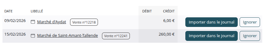 Si vous utilisez Ouvretaferme pour réaliser le journal de caisse de votre ferme, vous pouvez automatiquement y reporter le montant des ventes réalisées lors de vos marchés.